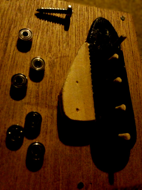 この場合も ベアリングを細工し 薄ダンボールの縁を追加すれば良いのか、木軸丸ごと局舎串刺しじゃ