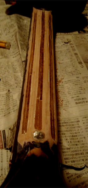 それとて 8レフティーネックが問題かと溝入れて見れば ザクザク削れて トラス姿を現す、