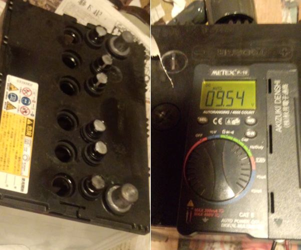 暫らくの間、車動かさへんから バッテリー上ってもぅたやないけ、10.46v か、スターター