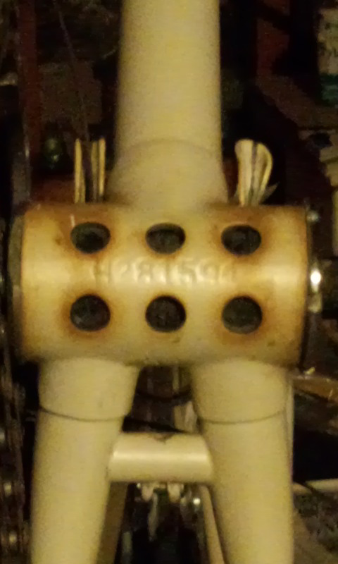フロントフォーク と シートチューブ の透き間が開いてるからと 鑢と電動ドリルで ガリッと削れば