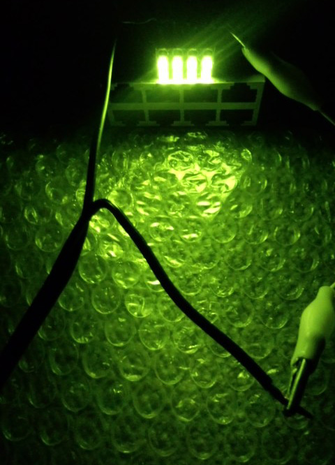電源4.6v 2ヶLED 限界過熱状態 懐中電灯嵌め込めば光量激減 レンズの作りだったのか、どうすんか。