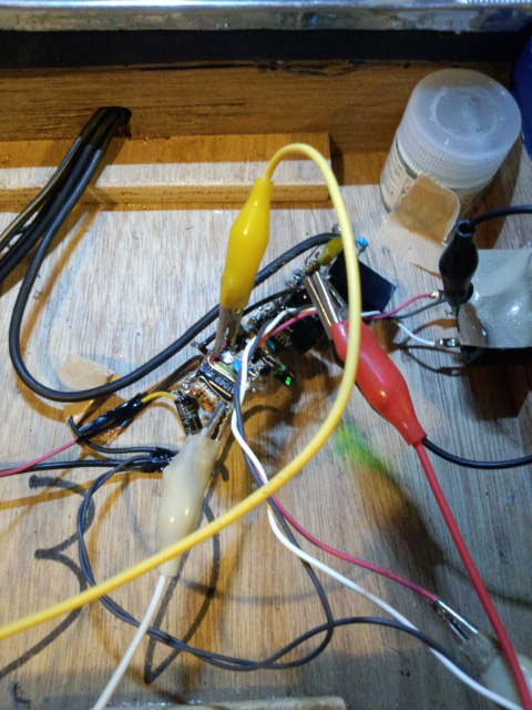 接続線を捻り鉢巻、信号と 9v纏めて良いものか、法螺吹き穴の洞窟で鳴ってるような胡散臭い音でも