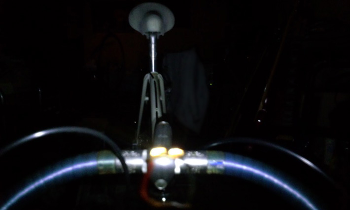 夜の公道を無灯火で走るのは違法である、幾ら歩行者や自転車が最優先だからとて、小雨降る真夜中、