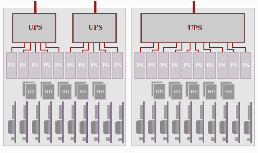 UPS は、停電時に電池や発電機で サーバー に電力を供給できるなら、動力用の モーター を回すと電気を作れるので、