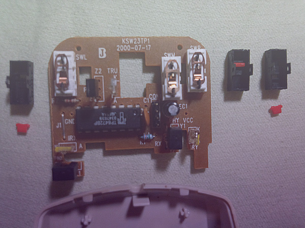 半田盛りが熔けないの、ハンダゴテの熱伝導不足だったの。 マウスの修理 1回目失敗、左クリック用の スイッチ
