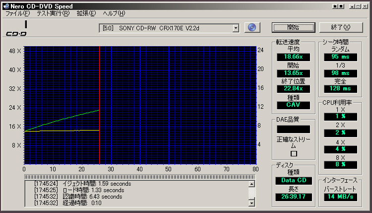 ッから挙動不安定、48倍速でも 8 の時もあれば 32倍も有り スピードテスト 31止まり、只の CDドラ何倍速か知らん