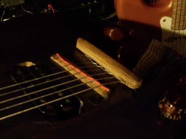ここも意気込まづ暫くの休憩、ジャンクギター弄り回し結局 ボディー真っ二つの御釈迦、シールド線の溝穴は