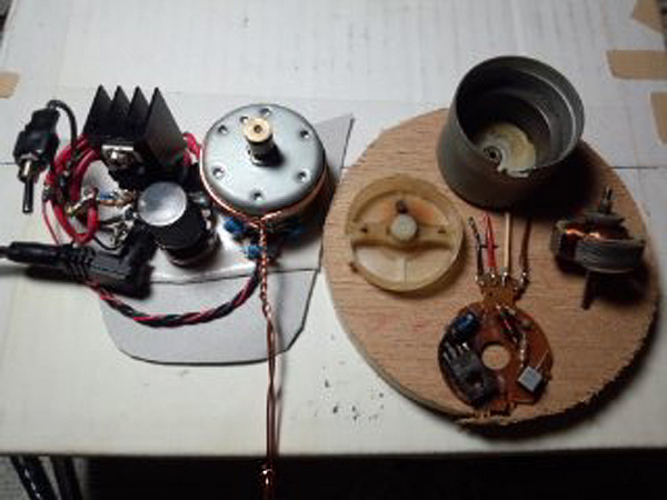 当然、この ヱフェク、 どの 回路だったっけ?は無しである。 円端板へと穴を空けモーターを固定、レギュ なんぞ盛付け