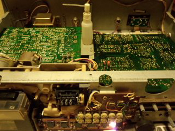 チューブアンプ の姿はなんやね。 壊れてる 4トラック 6チャンネル カセットレコーダー の アンプ と 駆動部、其処へ