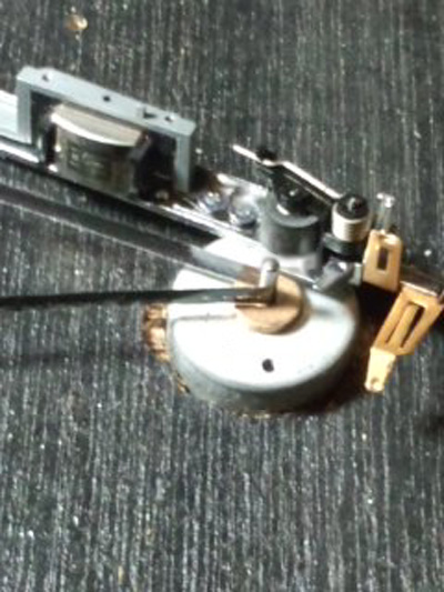 スピンドル中心 から 針先の オーバーハング は 11mmである、小型モーターの振動や糸繋ぎ目も聞えないけんど