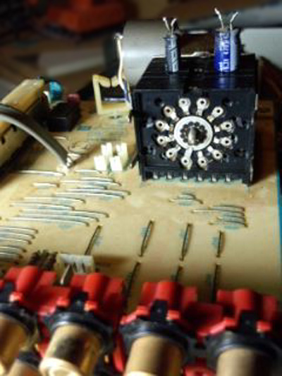 漣模様の ハンダ群、1000μF の 10vを 16Vへと置換えこんなんで動くのかたった 1個のコンデン だけんどもアッサリ