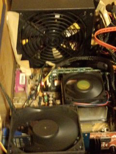 物凄い熱気、これじゃ壊れると 電源ファンが渋くって半固着状態、廻ってるけど冷えてない