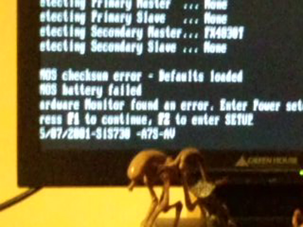 BIOS画面乱れる荒れる有様、CMOSクリアから恐る々電源入れるとコリャ速い Athlon XP 780MB の威力じゃぃ、